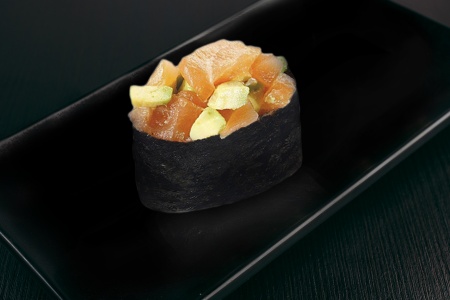 рис,лосось,креветки,сыр сливочный,рисовые шарики,чука,тобико оранж,нити чили.